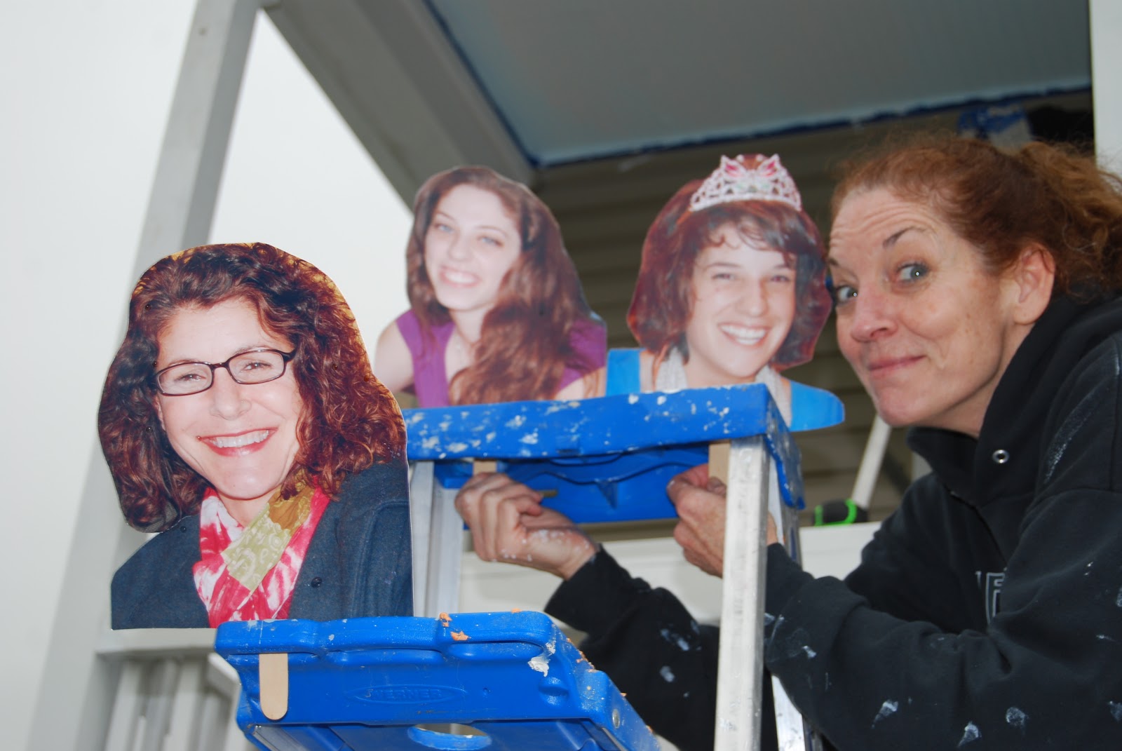 Julie and Nicole begin laying the floor while Frank and George finish painting the ceilings.